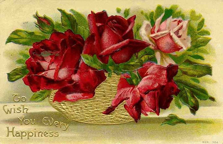 Algunas de estas postales me parecen una preciosidad!, es cierto hoy el mail, nos permite mucha más proximidad, inmediatez.... pero hemos perdido la belleza de estas postales. Rosas y... más!